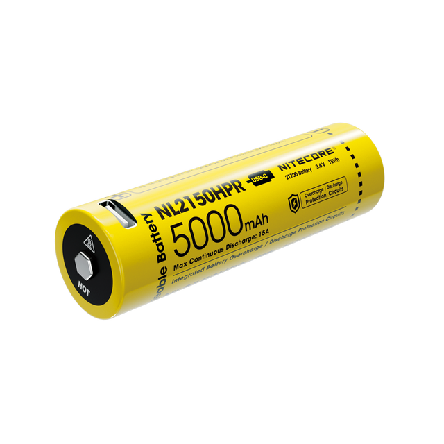 The next generation 21700 rechargeable battery from NITECORE, the NL2150HPR has an amazing 5000mAh capacity. An ideal companion for the NEW P series lights, HC35 headlamp or the E4K flashlight from NITECORE, an extra 21700 is a great back-up battery to have on hand as more electronic products and NITECORE flashlights will utilize this battery. The NL2150HPR is HP designated meaning it is compatible with flashlights which require >15A current. The NL2150HPR has a built-in USB-C port and can be charged directly with a USB-C cable or using a traditional charger like a NITECORE UI1.