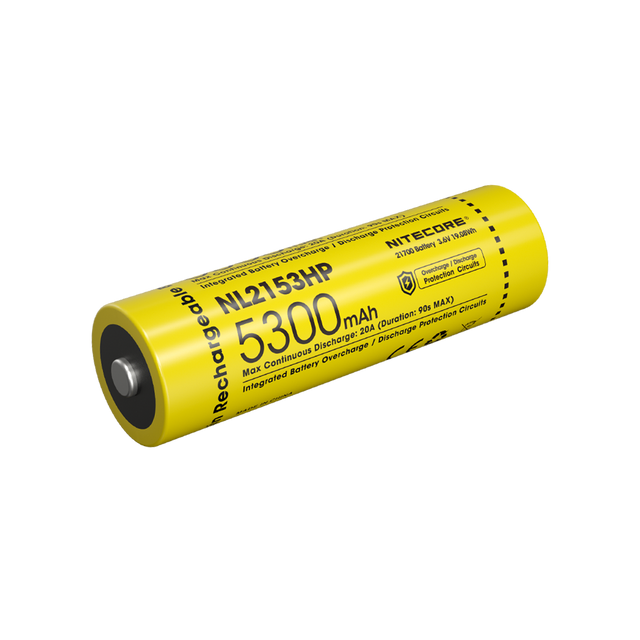 From Nitecore's latest battery generation, the NL2153HP stands out with an impressive 5300mAh capacity, making it an excellent choice for high-drain devices due to its continuous 20A discharge current. Despite its compact size, the NL2153HP boasts an impressive energy density of 268.7 mWh/g, which is 9% higher than other conventional 21700 batteries. Endowed with Nitecore's hallmark safety features and quality engineering, the NL2153HP stands as a testament to the brand's reputation as a reliable source of rechargeable Li-ion batteries.