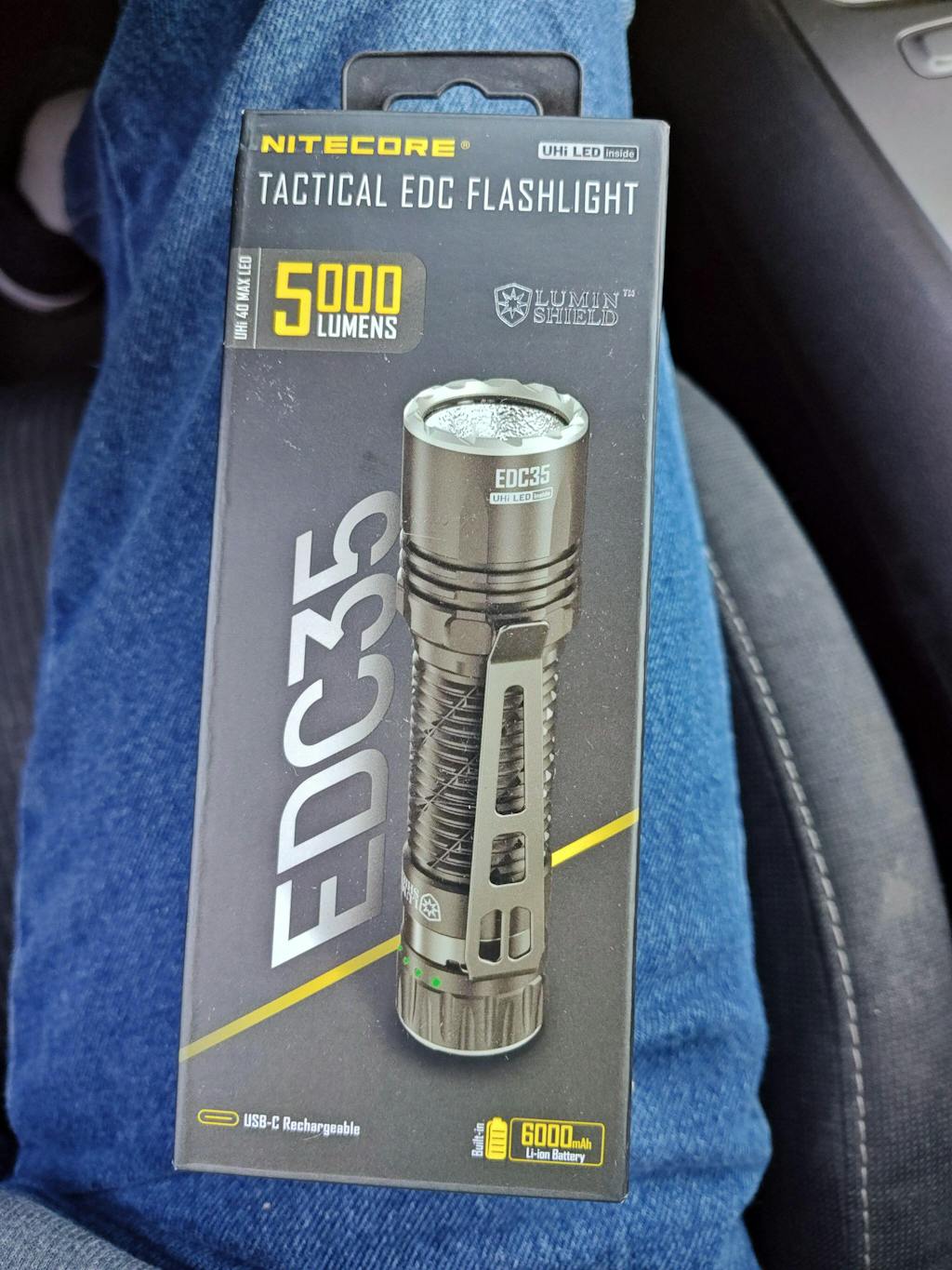 The Nitecore EDC35 flashlight boasts amazing brightness and throw, making it an ideal choice for everyday carry. Featuring the innovative NiteLab UHi 40 MAX LED, the EDC35 delivers an amazing 5000-lumen output and an impressive throw of 601 yards. Fully press the tail switch to power the light on or off. While the light is on, perform a half-press to cycle through four different brightness levels. For momentary modes, half-press and hold to activate the 3000-lumen spotlight for searching, or fully press and hold to engage the full 5000-lumen output. The EDC35 also includes a sensor protection function that decreases the EDC35’s brightness when it’s too close to objects to prevent overheating.