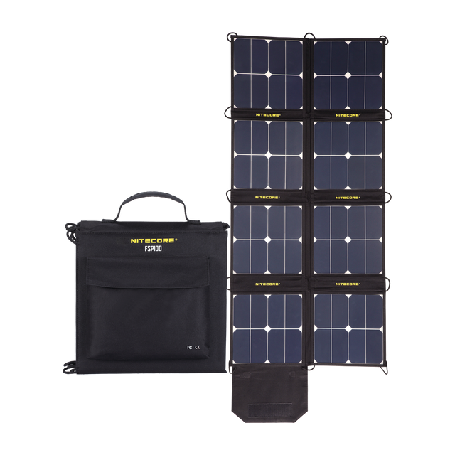 The Nitecore FSP100 is a 100w solar panel that provides a sustainable power solution off the grid and on the go. It consists of eight foldable 1ft x 1ft square solar panels. When expanded, these solar panels harvest solar rays with an outstanding cell efficiency of over 24%, 10% more than typical solar panels. When collapsed, the FSP100 is the size of a typical laptop and only weighs 4.6 pounds, great for transport and storage. It is efficient, lightweight and portable! For the modern outdoor sportsman, nothing compares to the FSP100.