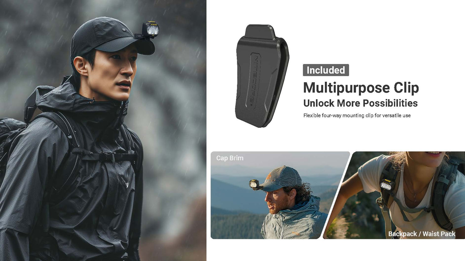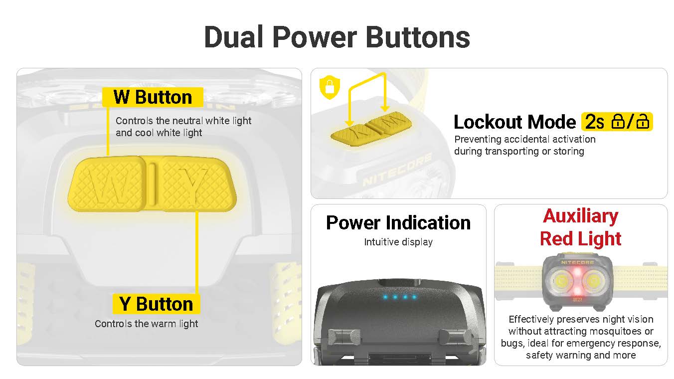 The UT27 MCT offers three selectable color temperatures: 3000K warm light for better visibility in rain, fog, and snow; 4500K neutral white for clarity on steep slopes, streams, and muddy terrain; and 6500K cool white for maximum brightness and contrast during camping or urban night running. It also includes a red light mode, with steady or flashing options, to preserve night vision and enhance situational awareness. Dual switches allow fast, intuitive control for cycling between modes and adjusting brightness on the go.