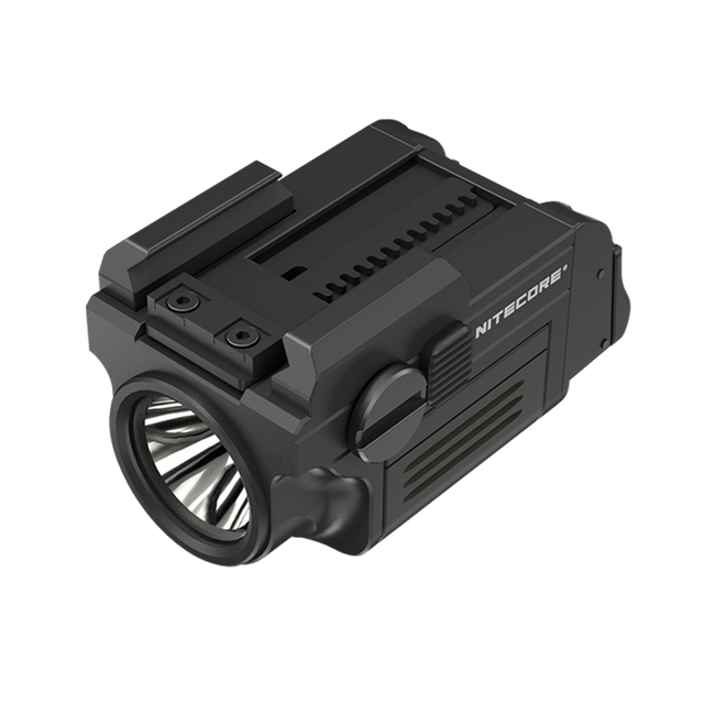 The Nitecore NPL25 is a compact rail mount tactical flashlight that fits most compact and full-size pistols, delivering a maximum output of 900 lumens and a throw of 278 yards. With a peak beam intensity of 16,000 candelas, the NPL25 provides an intense spotlight and ample floodlight simultaneously, offering clear visibility of both distant and nearby surroundings for any tactical scenarios. Installing the NPL25 is effortless; simply align the rail stopper with the recoil groove of the rail and slide the NPL25 forward or backward to your desired position. For added versatility, a rail adapter is included. The NPL25 features an ambidextrous switch design catering to both left and right-handed users, allowing for flexible operation. It offers two output modes: Constant On and Momentary. Short press either switch for continuous lighting or press and hold for momentary illumination.